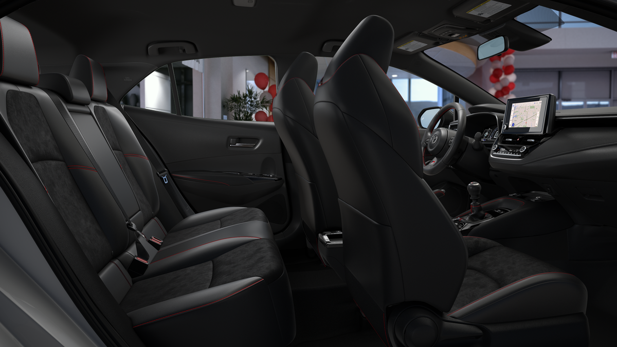 - BRIN•NAUB® and synthetic leather-trimmed sport seats with Red stitching and GR-badged headrests; 6-way adjustable driver's seat with seatback pocket; 4-way adjustable front passenger seat with seatback pocket