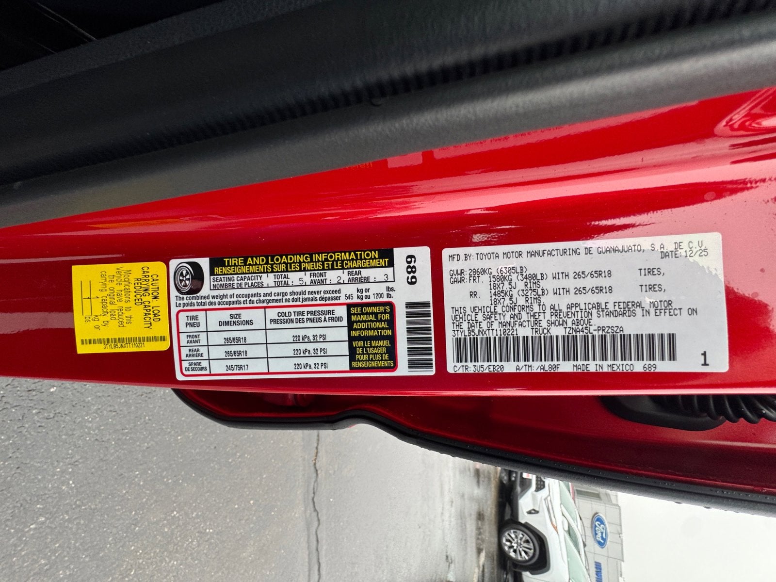 - Front Tire Size: P265/65TR18