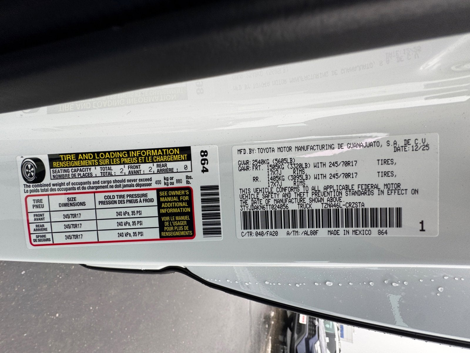 - Front Tire Size: P245/70TR17