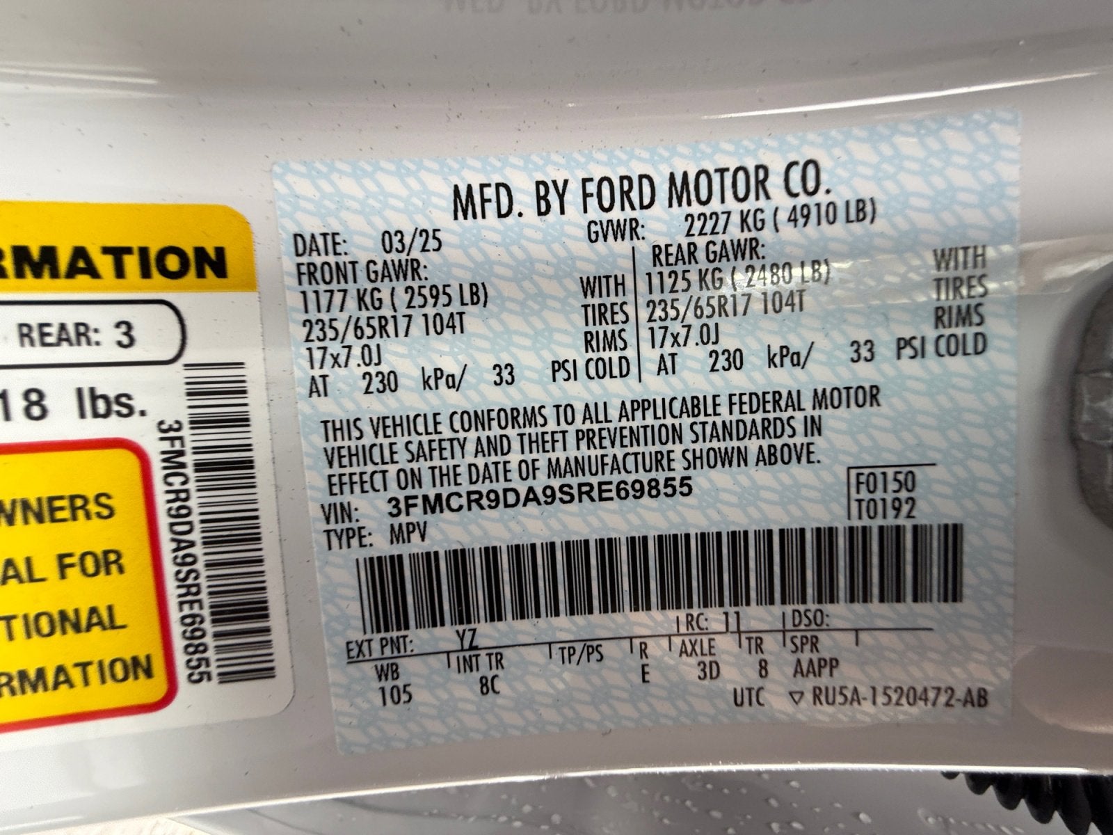 - Vehicle Name: Ford Bronco Sport