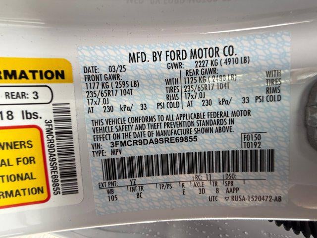 Irwin Automotive Group is proud to present you with another True Market Priced Pre-Owned Vehicle. Transparent Pricing Of $ 37525 !! This 2025 Ford Bronco Sport Badlands Ford Gold Certified is loaded with the following Factory Options: Equipment Group 400A, Sasquatch Badlands Package (850W Engine Cooling Fan, Auxiliary Switches & Wiring, Brush Guard, Fender Tie Downs, High Clearance Fender Flares, HOSS 3.0 Off-Road Suspension, Rear Black Bumpers, Recovery Hooks, and Wheels: 17" Ebony Black-Painted Aluminum), Ford Gold Certified Certified, 4-Wheel Disc Brakes, 6 Speakers, ABS brakes, Air Conditioning, Alloy wheels, AM/FM radio: SiriusXM, AM/FM Stereo, Auto High-beam Headlights, Auto-dimming Rear-View mirror, Automatic temperature control, Brake assist, Compass, Delay-off headlights, Driver door bin, Driver vanity mirror, Dual front impact airbags, Dual front side impact airbags, Electronic Stability Control, Emergency communication system: SYNC 4 911 Assist, Four wheel independent suspension, Front anti-roll bar, Front Bucket Seats, Front Center Armrest, Front fog lights, Front License Plate Bracket, Front reading lights, Fully automatic headlights, Garage door transmitter, Heated door mirrors, Heated front seats, Heated steering wheel, Illuminated entry, Knee airbag, Leather Trimmed Front Bucket Seats, Low tire pressure warning, Memory seat, Occupant sensing airbag, Outside temperature display, Overhead airbag, Overhead console, Panic alarm, Passenger door bin, Passenger vanity mirror, Power door mirrors, Power driver seat, Power passenger seat, Power steering, Power windows, Radio data system, Rear anti-roll bar, Rear reading lights, Rear seat center armrest, Rear window defroster, Rear window wiper, Remote keyless entry, Security system, SiriusXM, Speed control, Speed-sensing steering, Speed-Sensitive Wipers, Split folding rear seat, Steering wheel mounted audio controls, SYNC 4 w/Enhanced Voice Reco